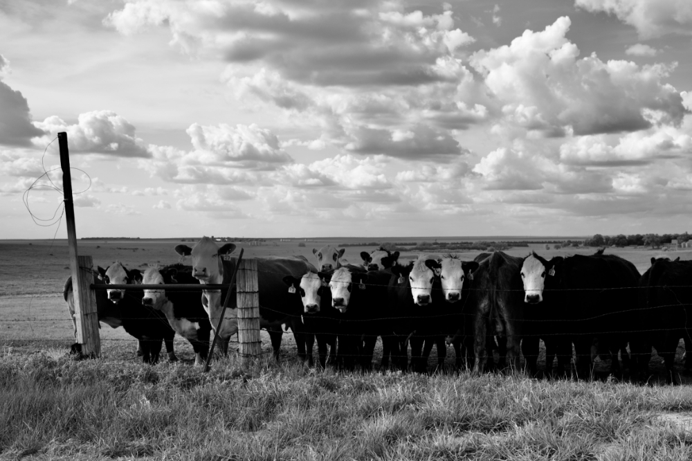 -› Customize in cartAmong the open fields of western Kansas, grazing cows gathered against a fence, curious at the stocky photographer who was equally intrigued, although not entirely confident of said fence which separated him.